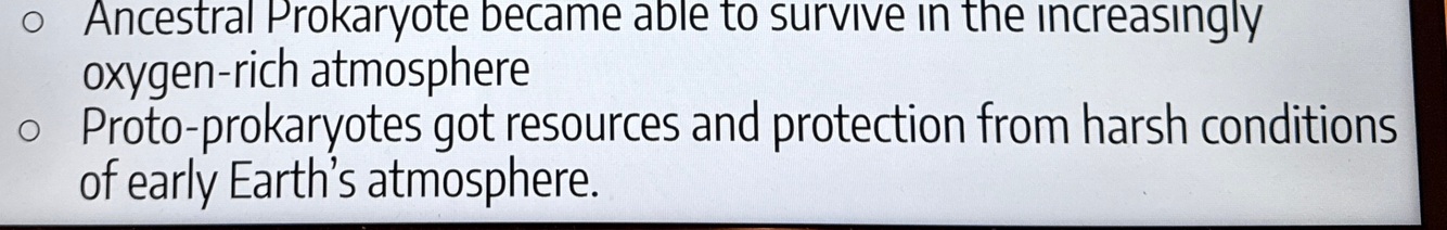 Ancestral prokaryotic = would become eukaryote through engulfing proto prokaryote