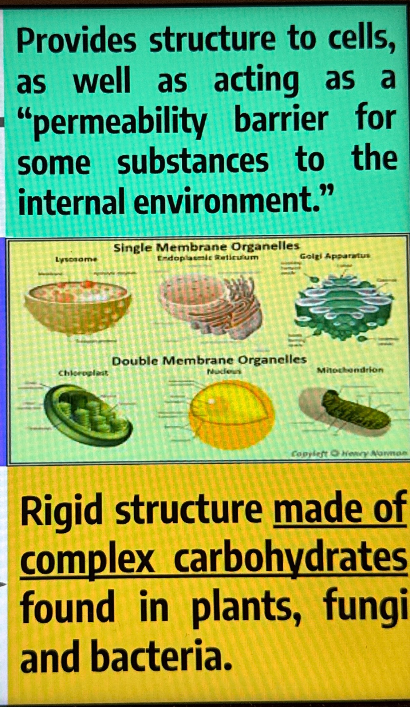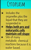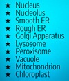 Cell membrane, cell wall, Ribosomes, cytoplasm, cytoskeleton, centriole and spindle fibers, flagella