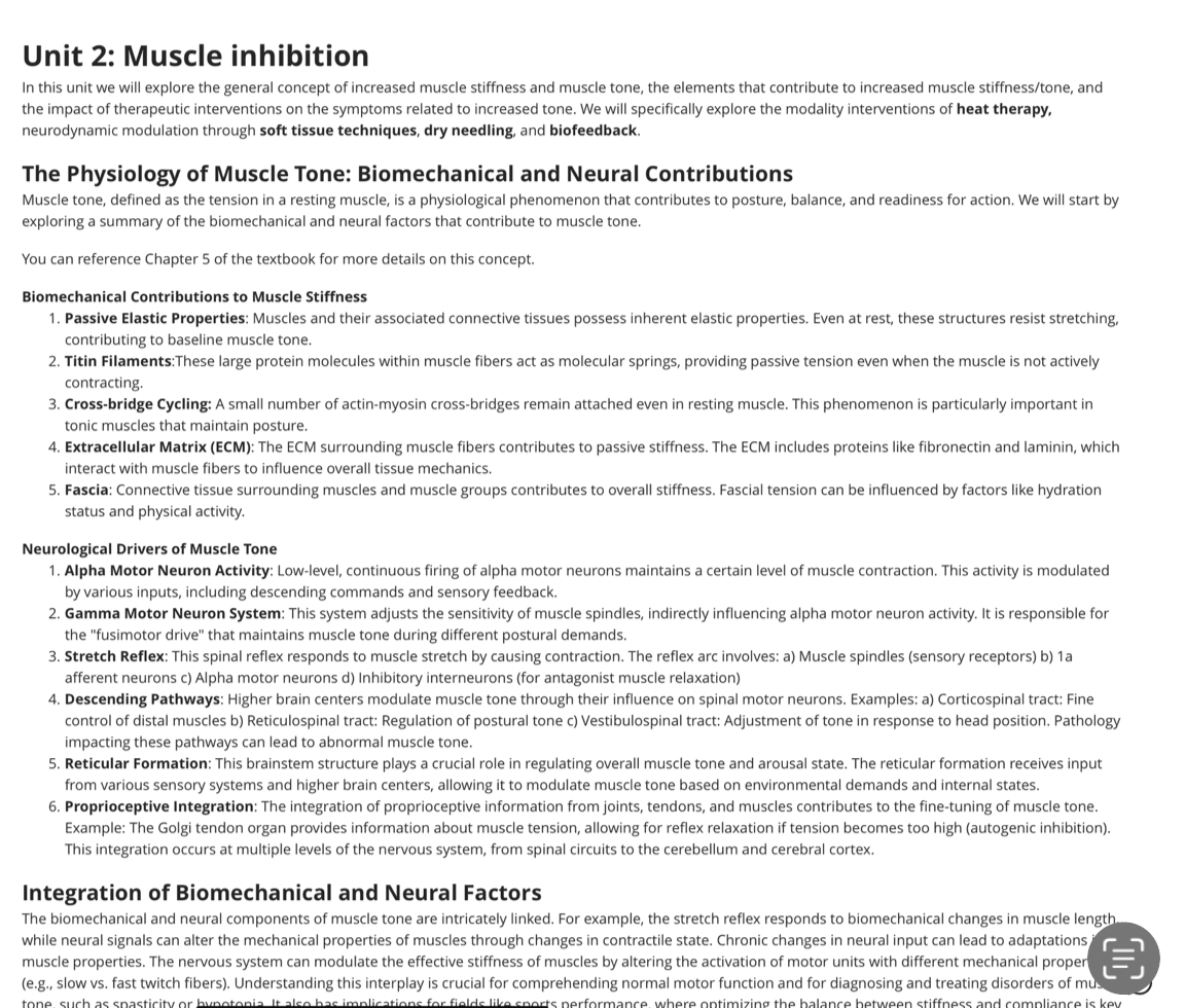 define the biomechanical contributions to muscle stiffness and the neurological drivers to muscle tone