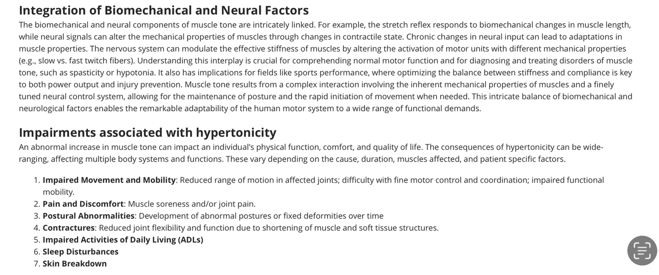 List impairments associated with hypertonicity