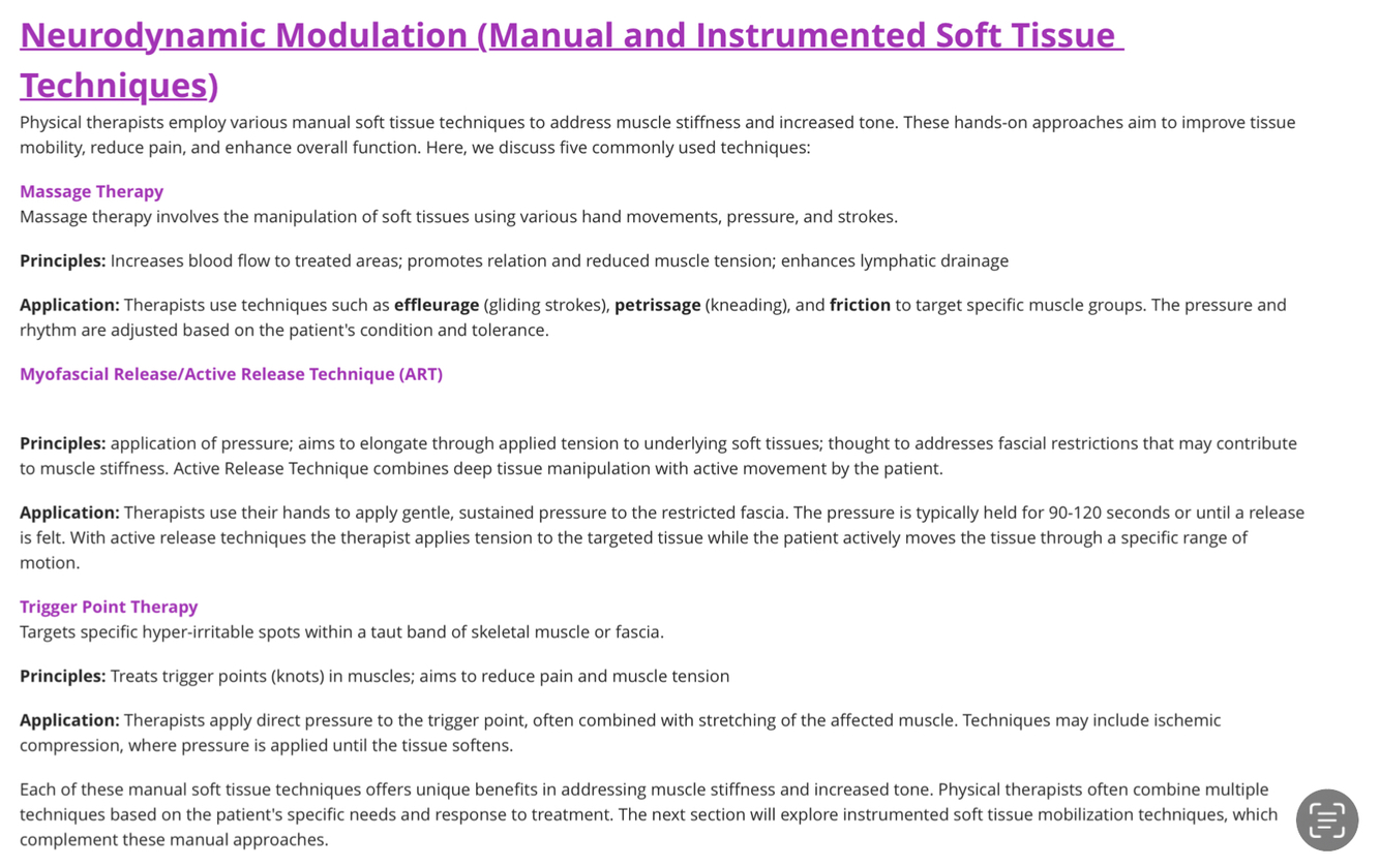 Explain principles and applications from massage therapy, myofascial release, and trigger point therapy