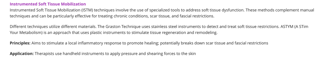 Explain applications and principles for instrumental soft tissue mobilization