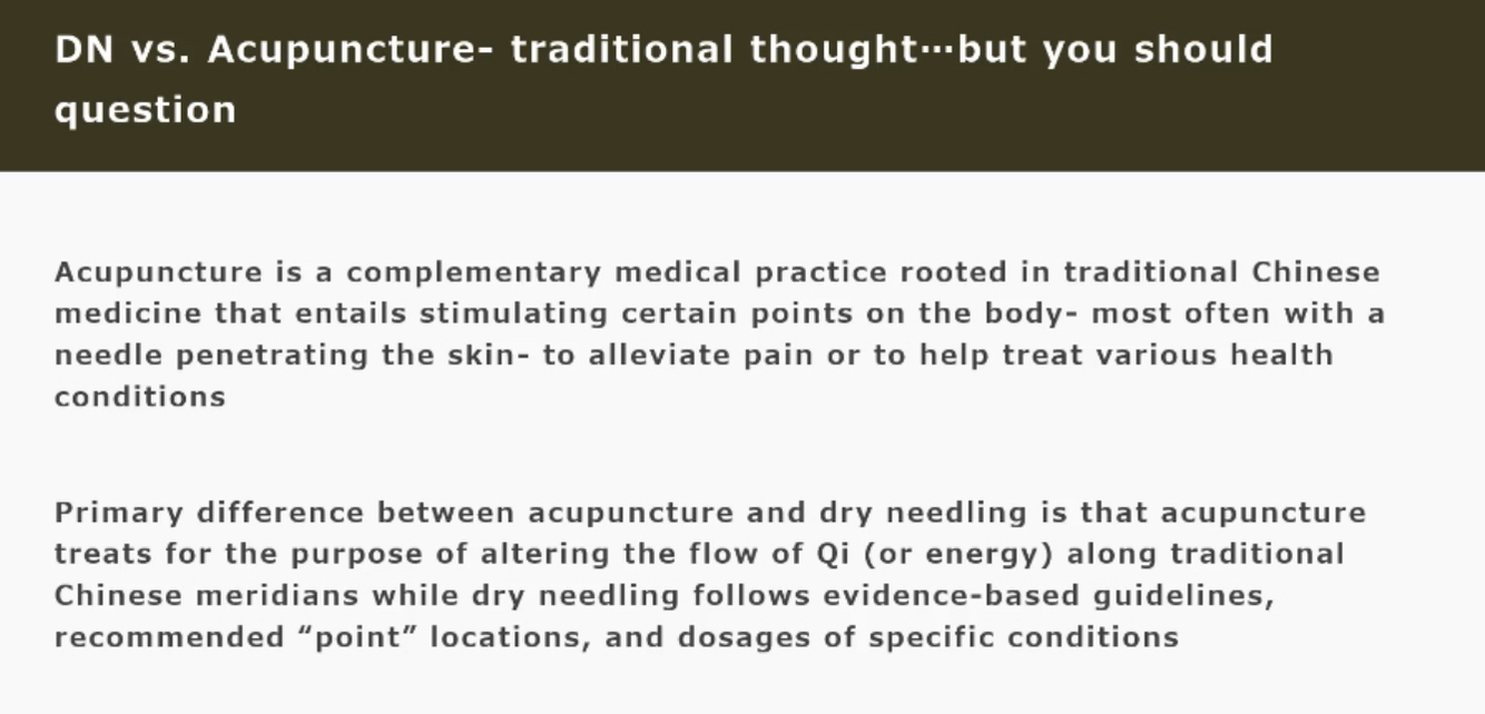 Explain DN vs acupuncture