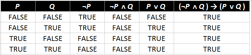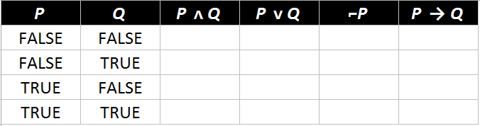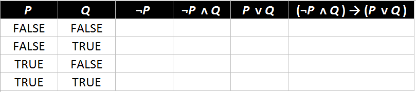Complete the following truth table:
