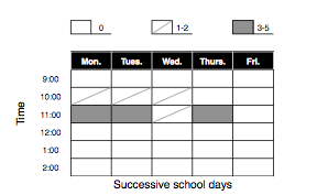 a data collection form for problem behavior and the intervals of time behaviors occurred. it provides a graphic display of data in a grid format. it is used to identify patterns of responding in natural settings