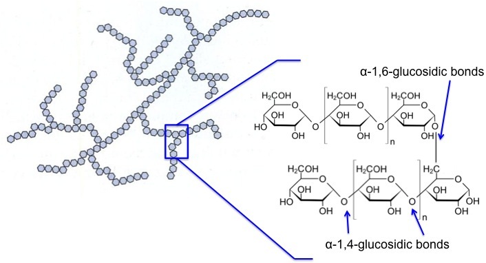 Describe the properties and structure of amylopectin.
