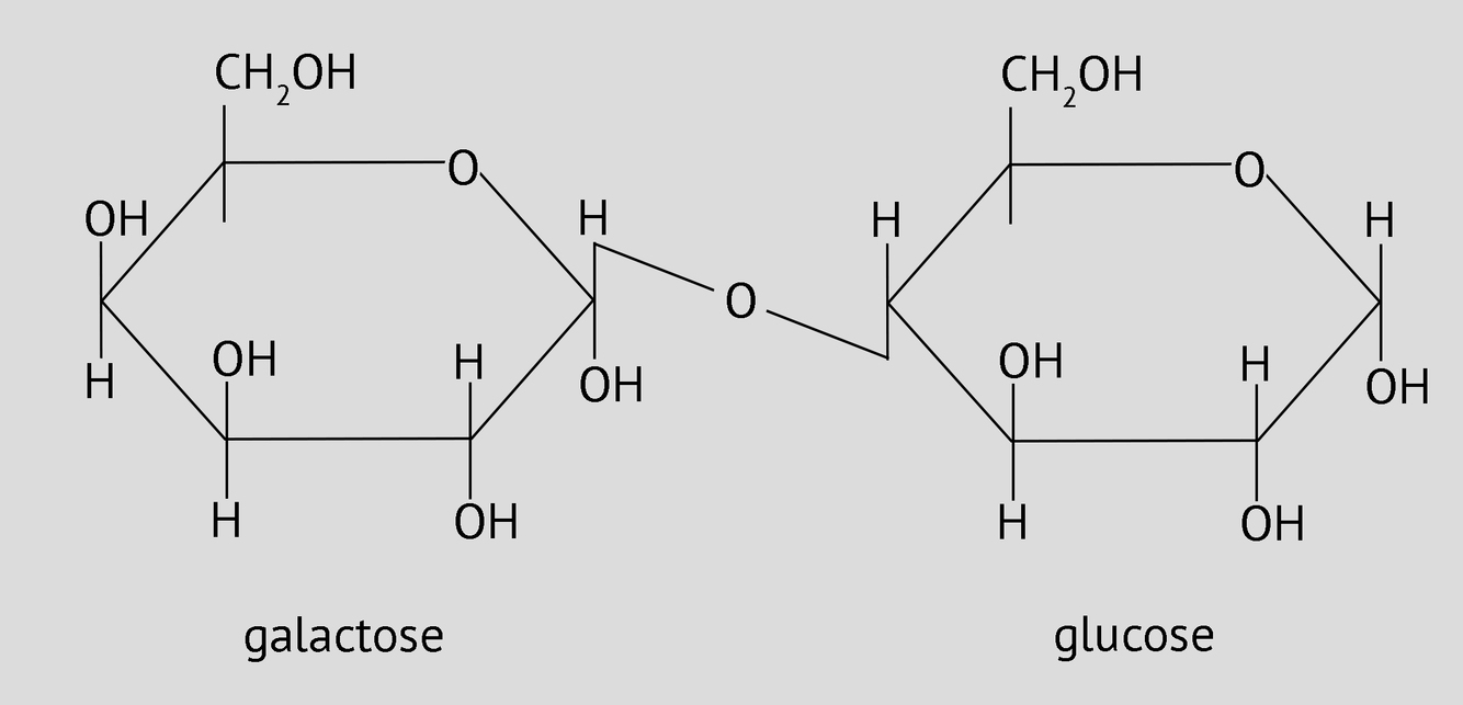 Glucose + galactose = Lactose