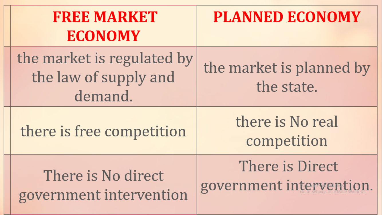 What are the differences between a free market and a planned market?