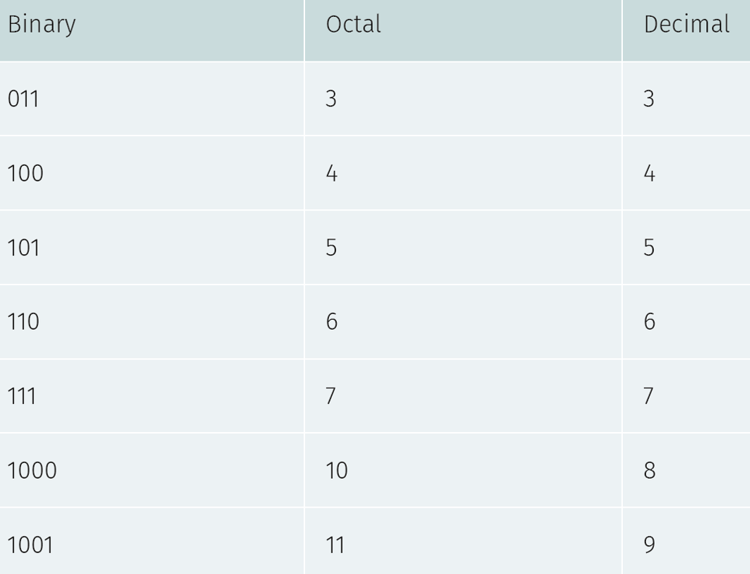 What is 111 binary in Octal?