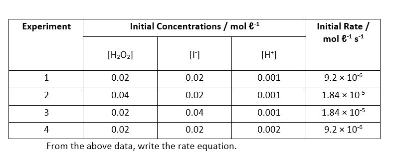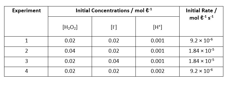 Rate = k [H2O2][I-][H+]0