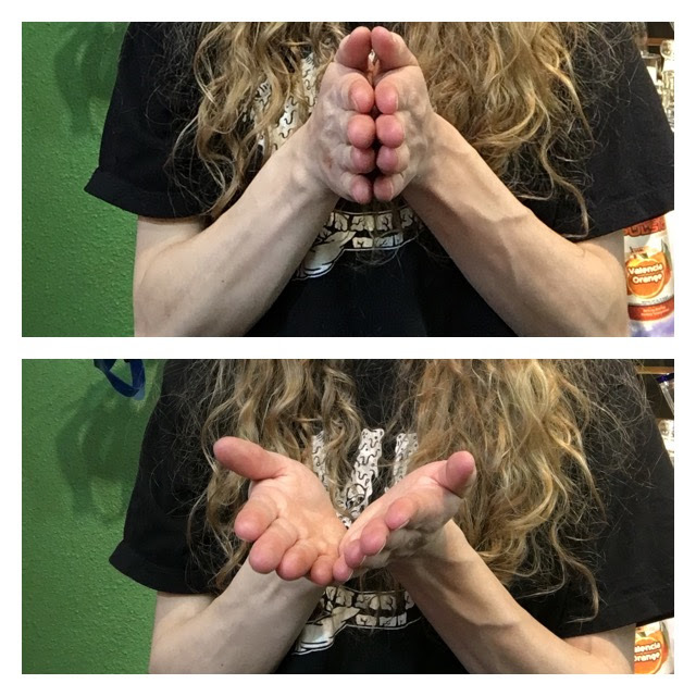 Briskly clap hands at palms