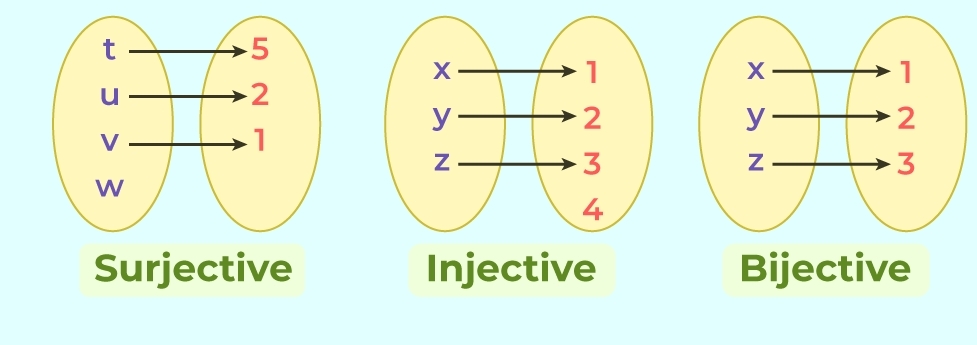 A function f:X → Y is surjective if for every y∈Y, there exists an x∈X such that f(x)=y. Too many domain is not capable of connecting to an output.