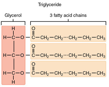 Glycerol and three fatty acids