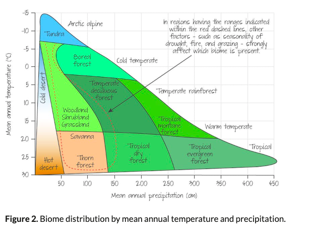 How mean annual temperature and precipitation combine to effect biomes distribution.