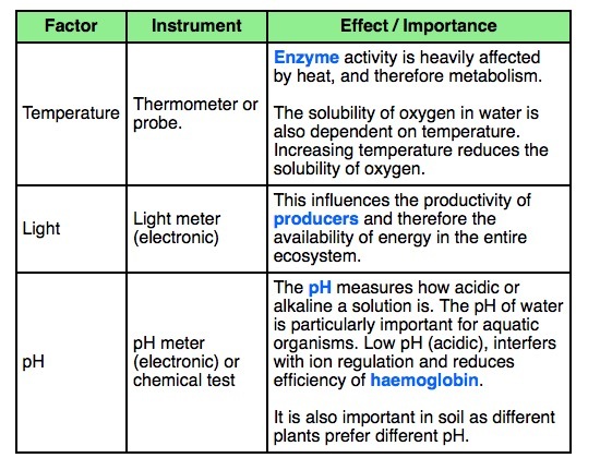 Instruments to measure abiotic factors