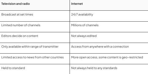 TV and radio vs internet