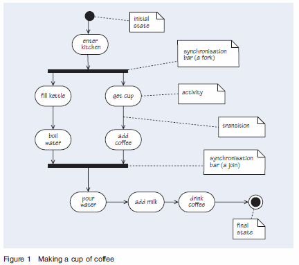 When the kettle is full and you are waiting for the water to boil, there is some ‘free’ time that you can use to add coffee to the cup. Placing the activity add coffee after thejoining synchronisation bar rather than before it would mean that you would have to wait to carry out the activity until the water had boiled, and the overall time taken for the task would be longer than that shown in Figure 1.