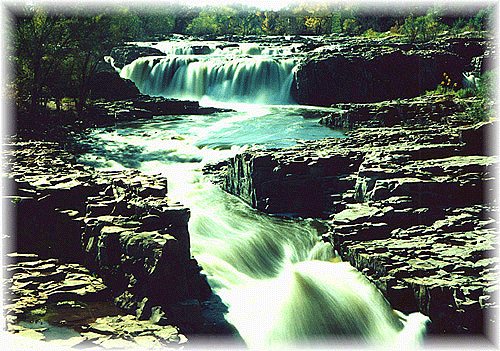 Wild river rapids formed by boulders and narrow cliffs</p>
