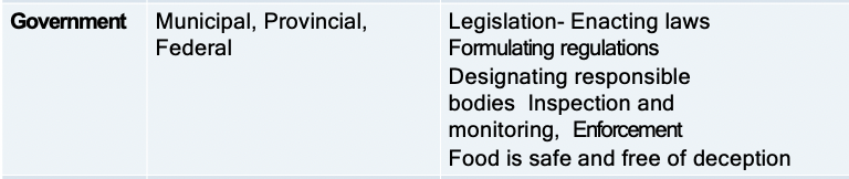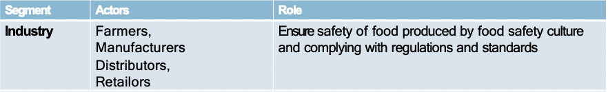 What is the role of industry (actors and role) for protecting food quality/safety?