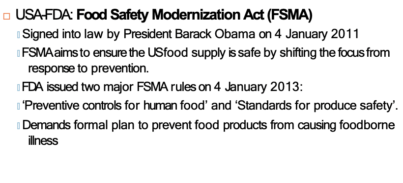 FSMA: abbreviation, sate established by whom, what is the goal, two major FSMA rules