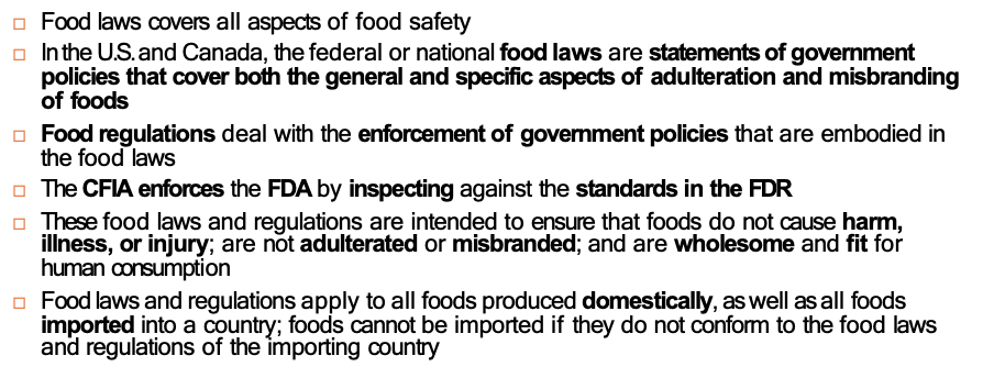 🞑 Licensing (Part 3): This Part enables the CFIA to: authorize persons to conduct certain activities through licensing; identify food businesses, collect information about the activities of food businesses; and take responsive action when non-compliant activities are found.
