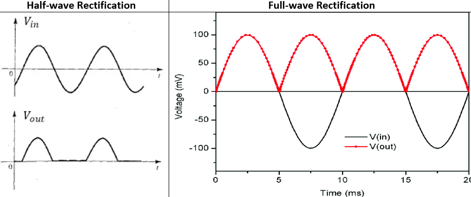 Half-wave or full-wave rectification.