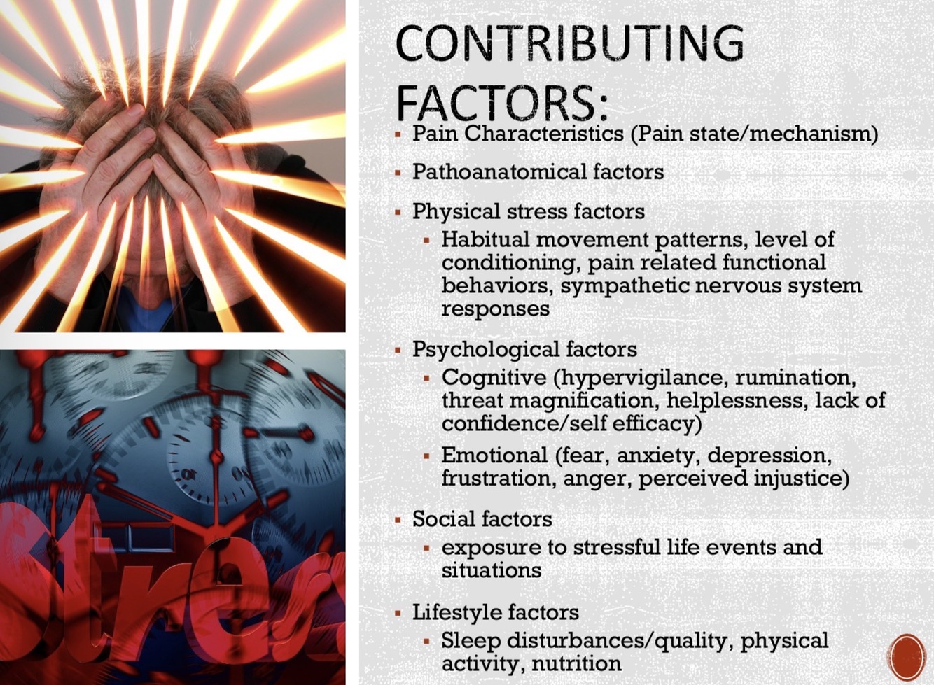 Explain contributing factors to pain