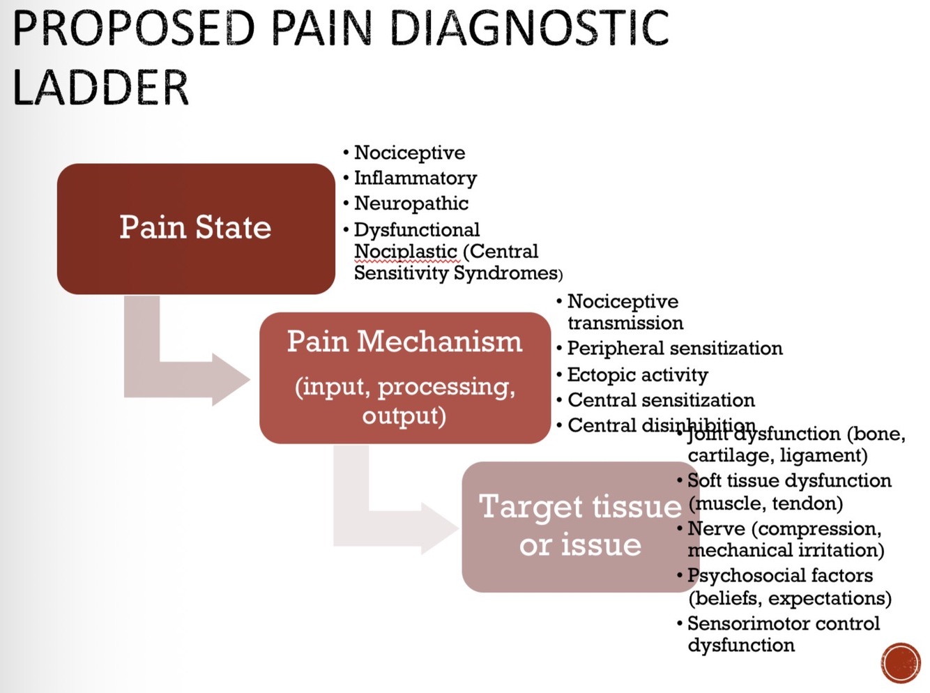Explain the pain and diagnostic ladder