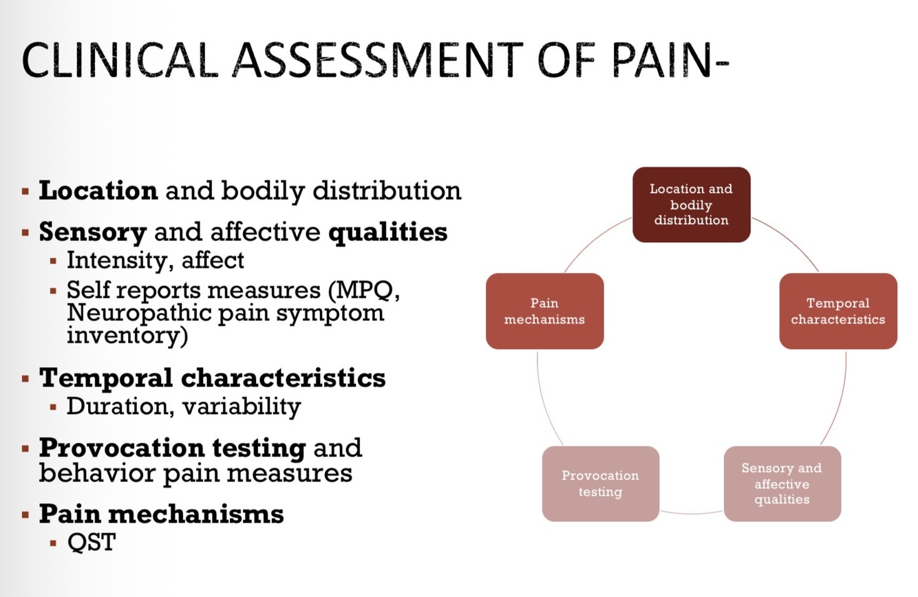Explain the clinical assessment of pain