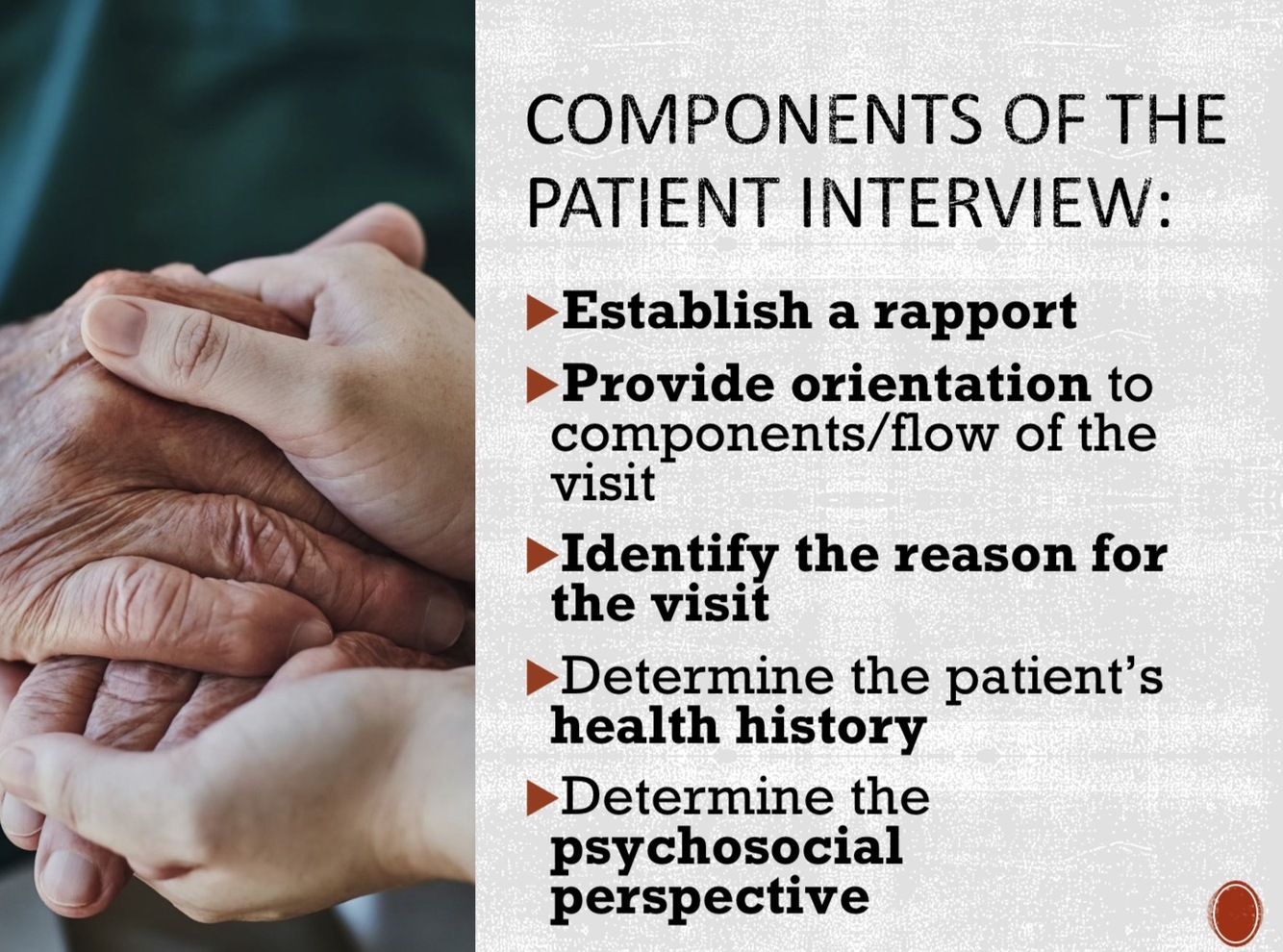 List essential components of the pt interview