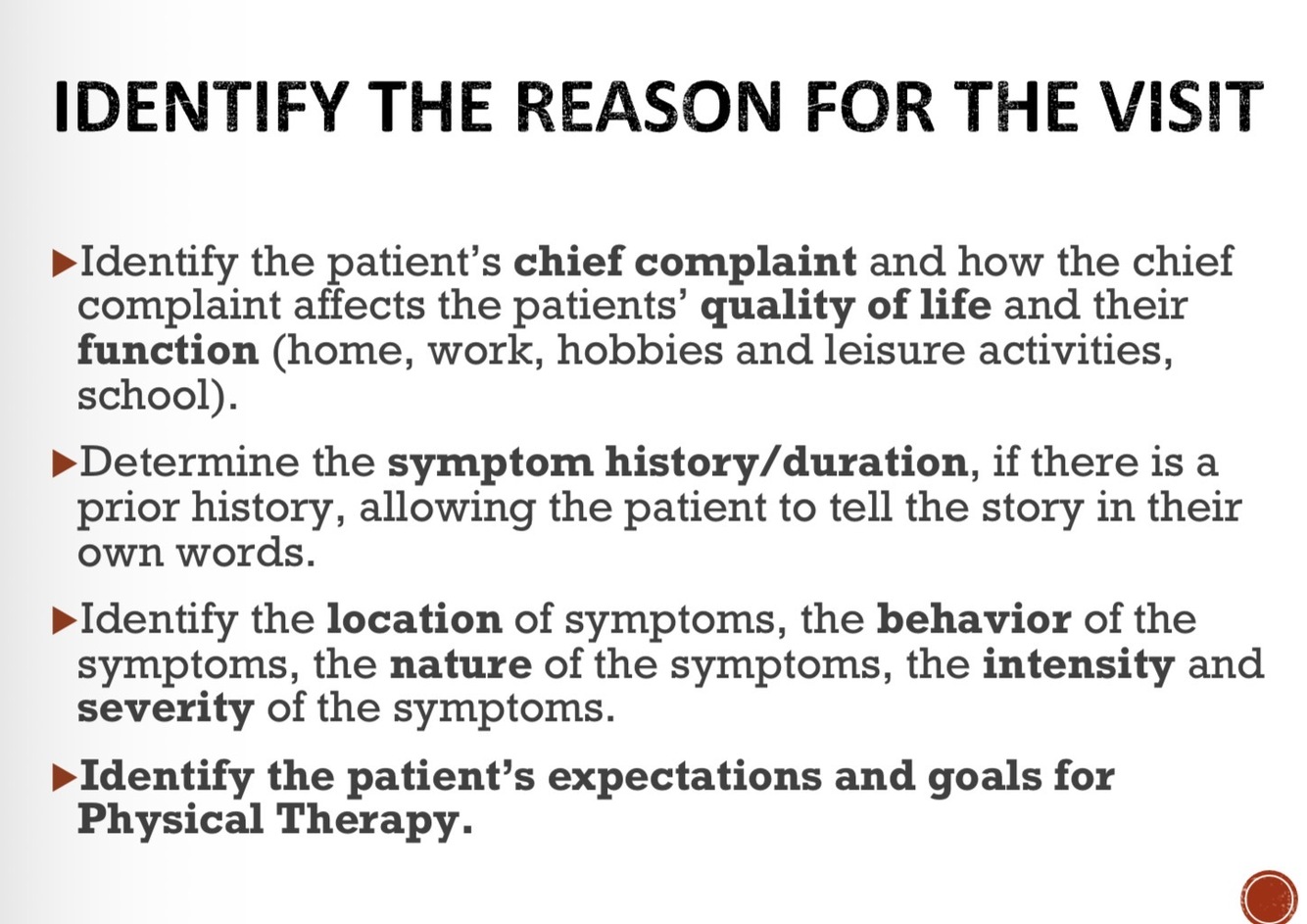 How to identify the reason for the visit?