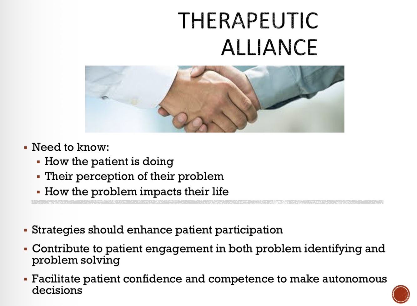Define therapeutic alliance