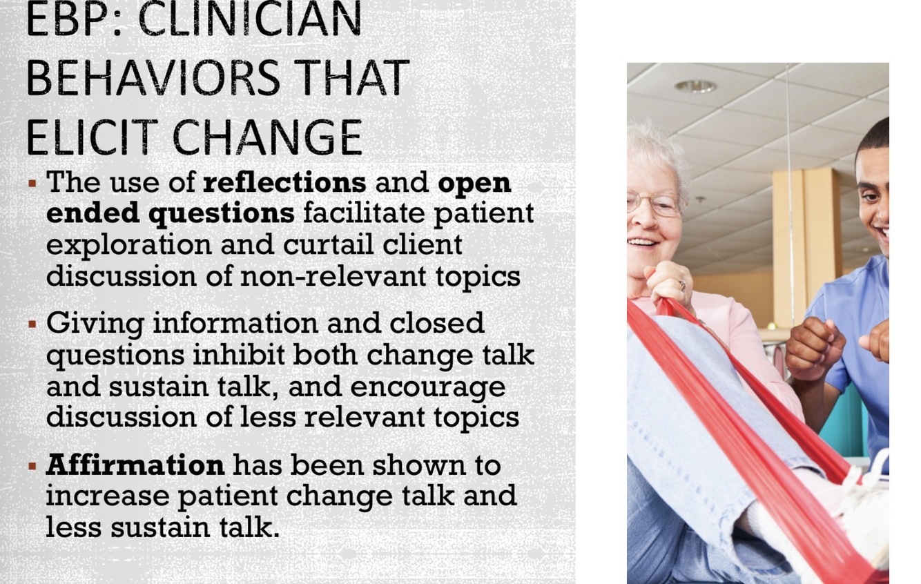 Provide examples of clinician behaviors that elicit change