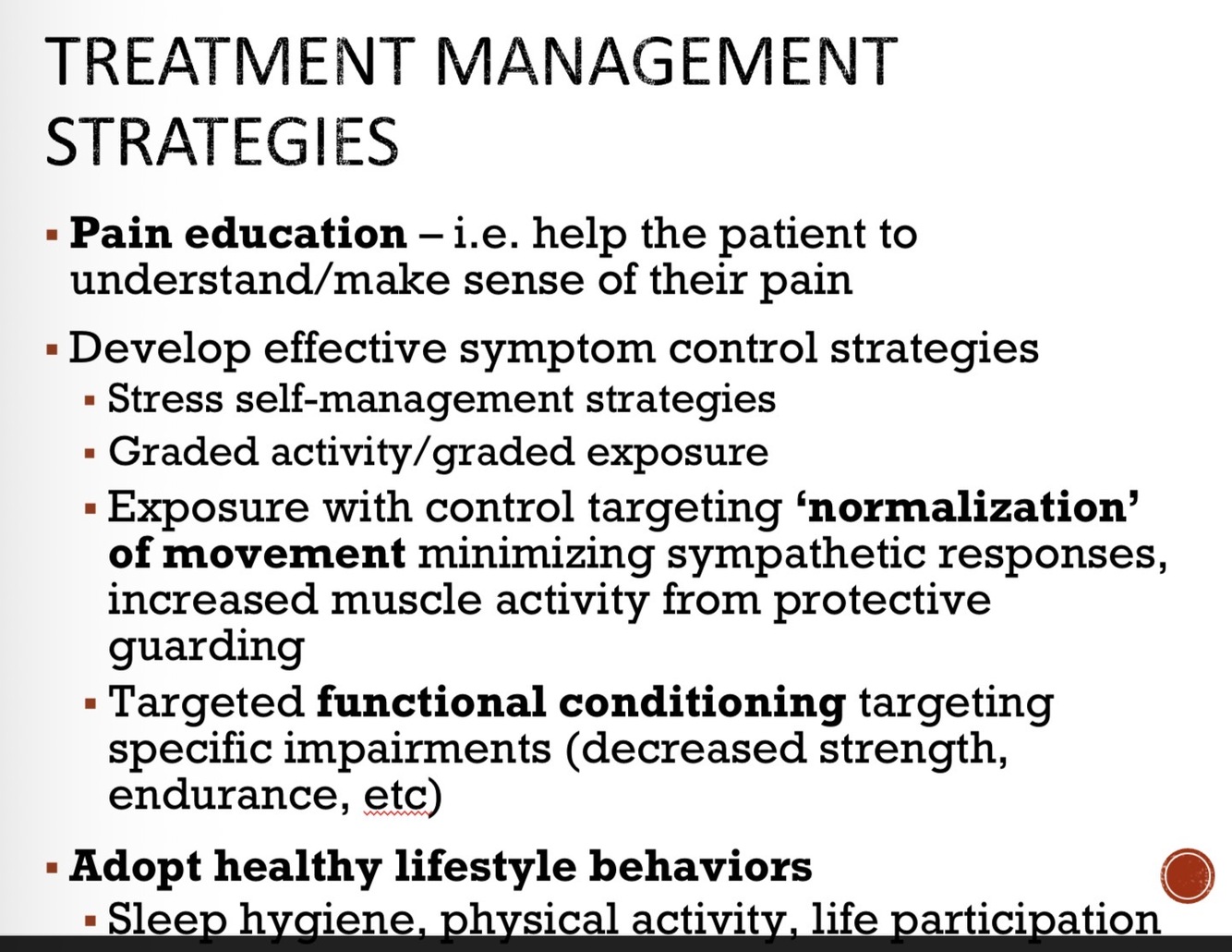 Give examples of treatment management strategies