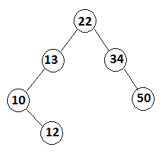 Draw a tree showing the correct outcome when the numbers [22, 13, 10, 34, 12, 50] are inserted into an empty binary search tree in the given order.