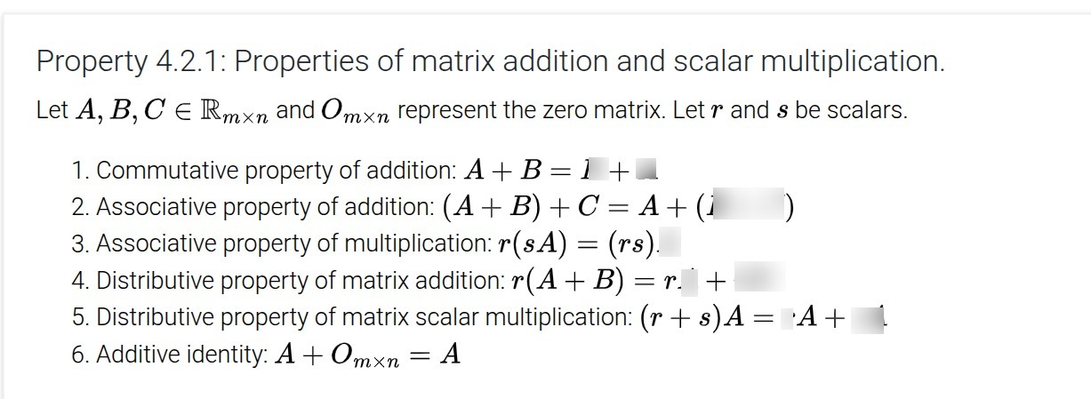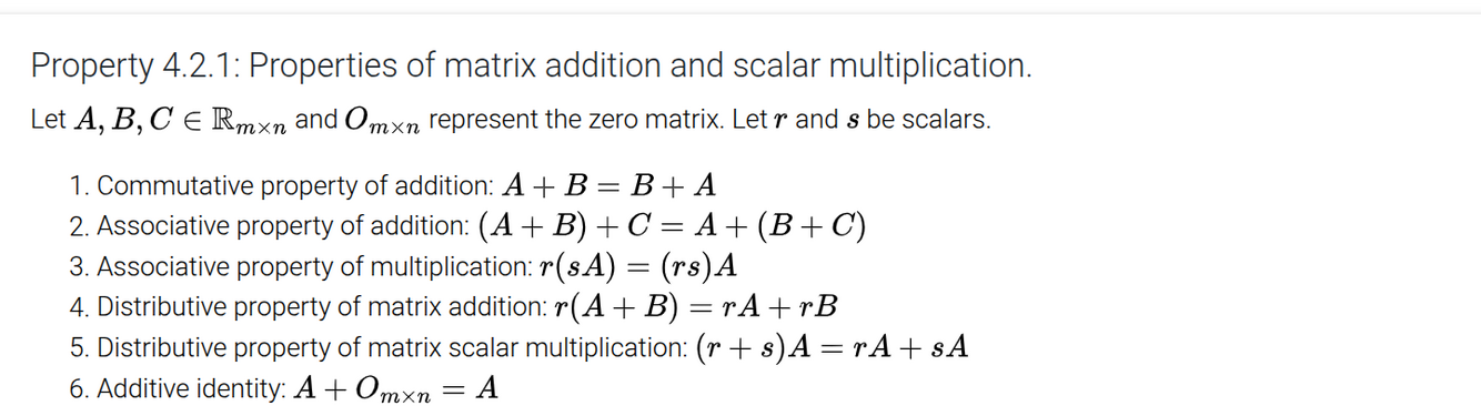 Properties of matrix addition and scalar multiplication