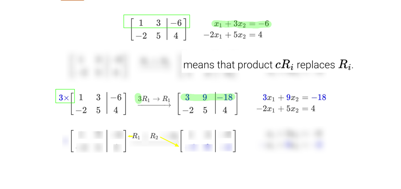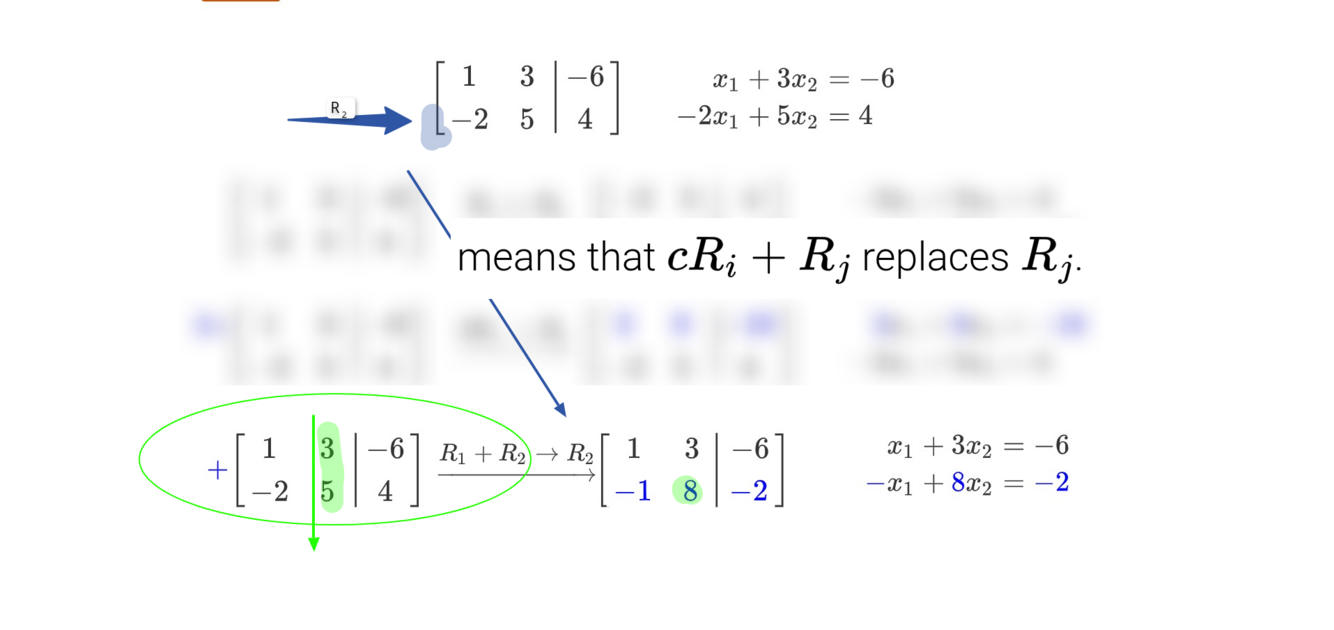 The product of the that row and the constant c then replaces the orginal row; with the products result.
