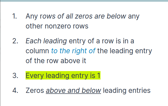 What are the rules for Reduced echelon form?
