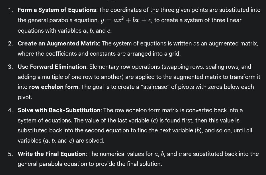 Find the equation for a parabola that passes through (3, 25), (1, 5), and (-2, 20).