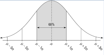 Empirical Rule: How much of the area under the curve is between 1 and -1 standard deviations of the mean?