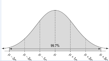 Empirical Rule: How much of the area under the curve is between 3 and -3 standard deviations from the mean?
