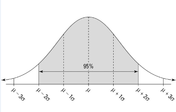 Empirical Rule: How much of the area under the curve is between 2 and -2 standard deviations from the mean?