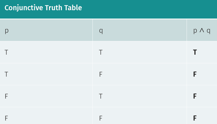 What does a conjunctive truth table look like?