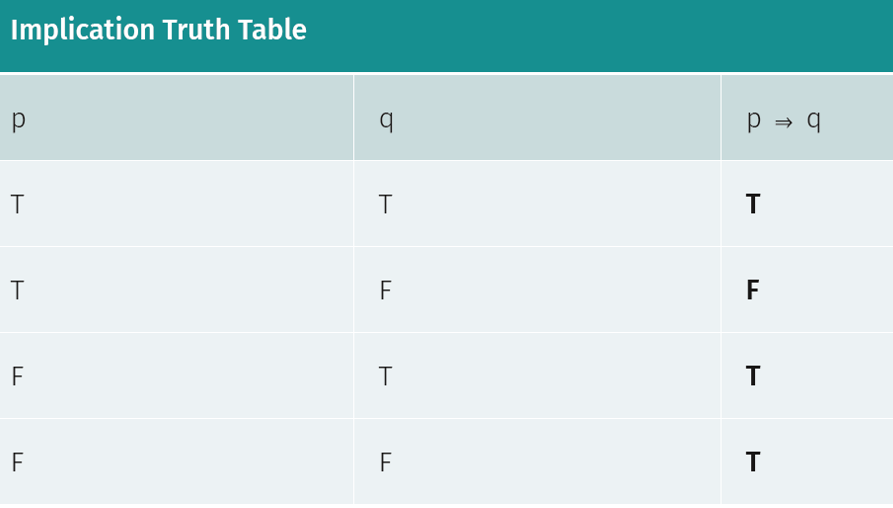 What does an implication truth table look like?