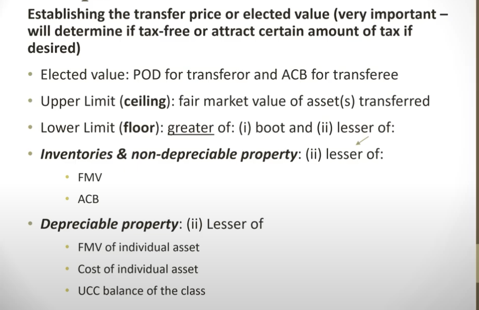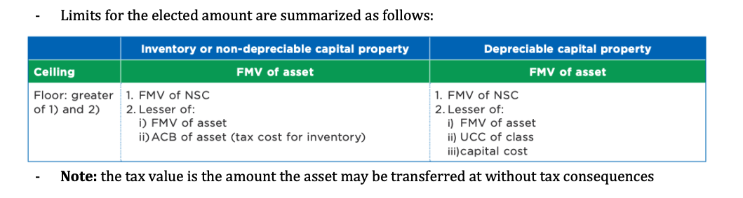 -Elected price > tax cost if the transferor wishes to trigger a capital gain or income to use up existing noncapital losses