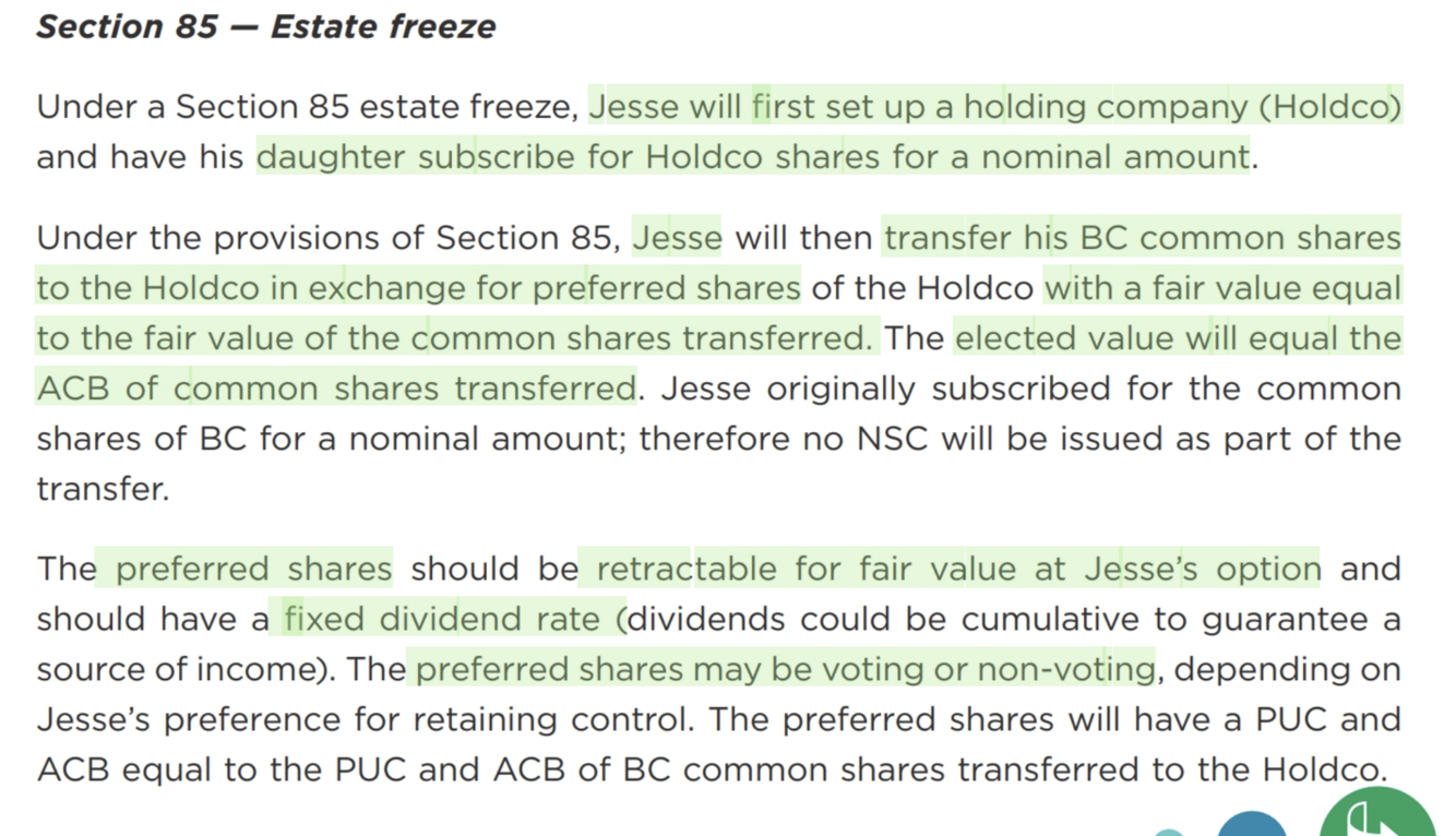 -Opco does a S.85 rollover of their common shrs to Holco in exchange for a promissory note and pref shrs of Holdco