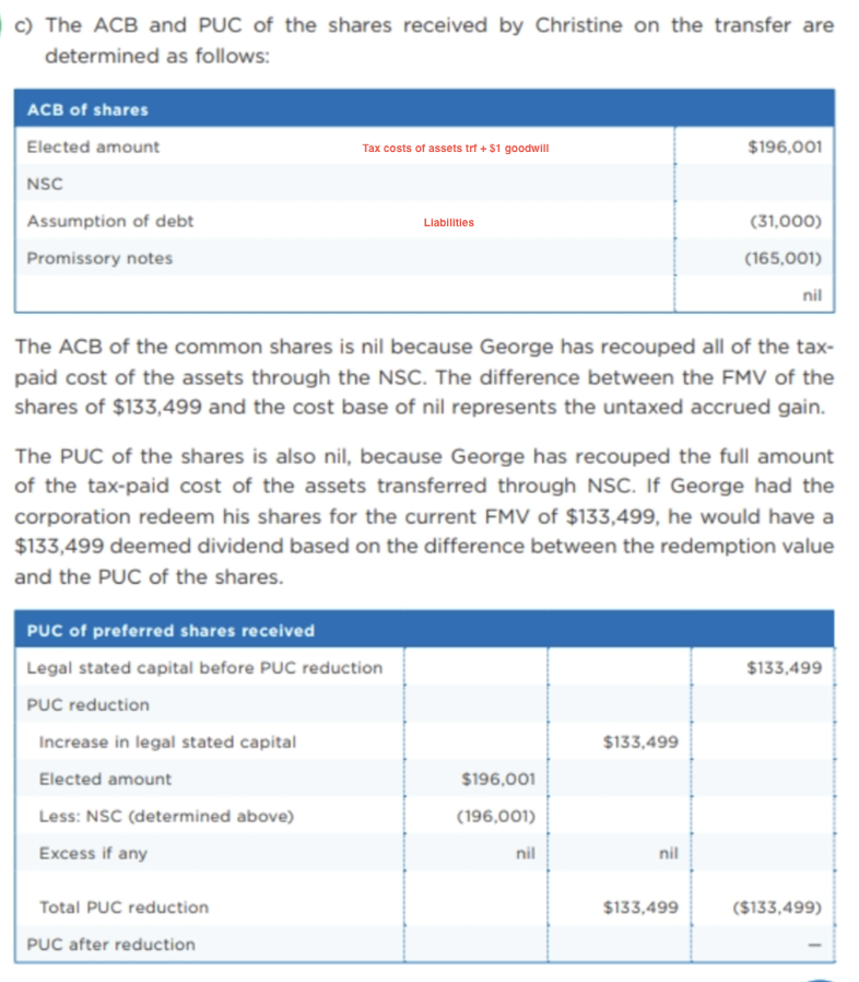 c) both ACB and PUC of Holdco pref shrs will be reduced if the shr takes back NSC equal to PUC of Opco CS trf