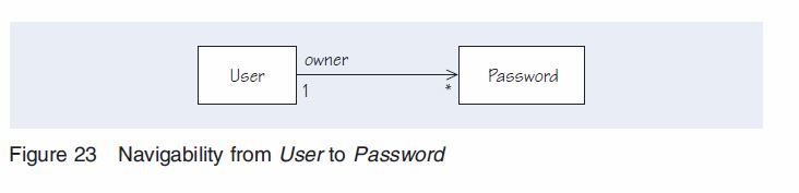 Users will want to ‘know about’ their passwords, not the other way round. Figure 23 shows that each instance of the class User will have a collection of references to the appropriate Password objects.