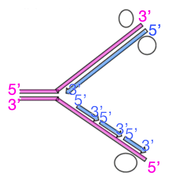 Top is leading, as new DNA is being made continuously