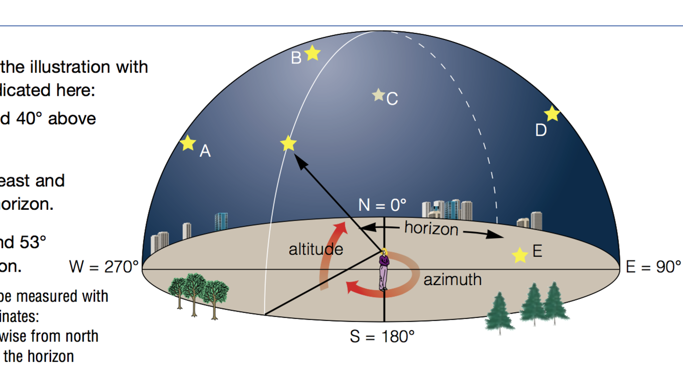 they would give a celestial body two co-ordinates measured in degrees 1. the first angle is measured clockwise from north that is called azimuth 2. next they would measure the celestial body angle above the horizon in degrees. This is called altitude